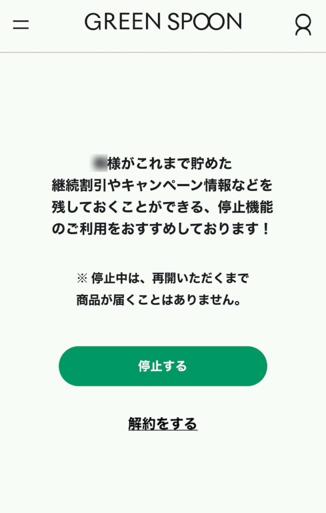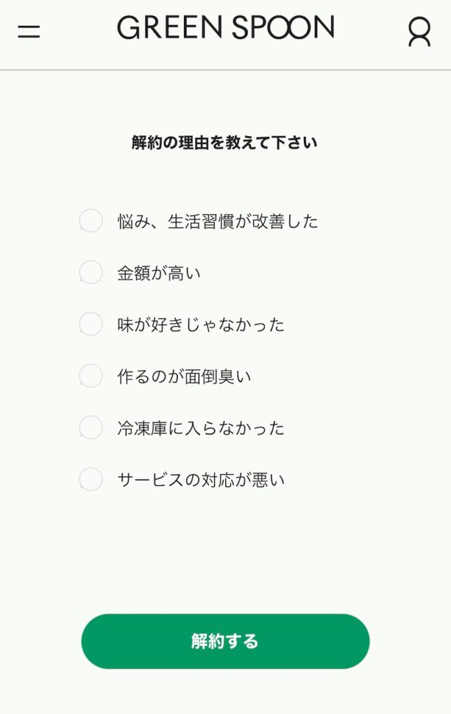 一方で、今後もう2度とGREEN SPOONで注文する予定がないのであれば解約を選んでOKです。