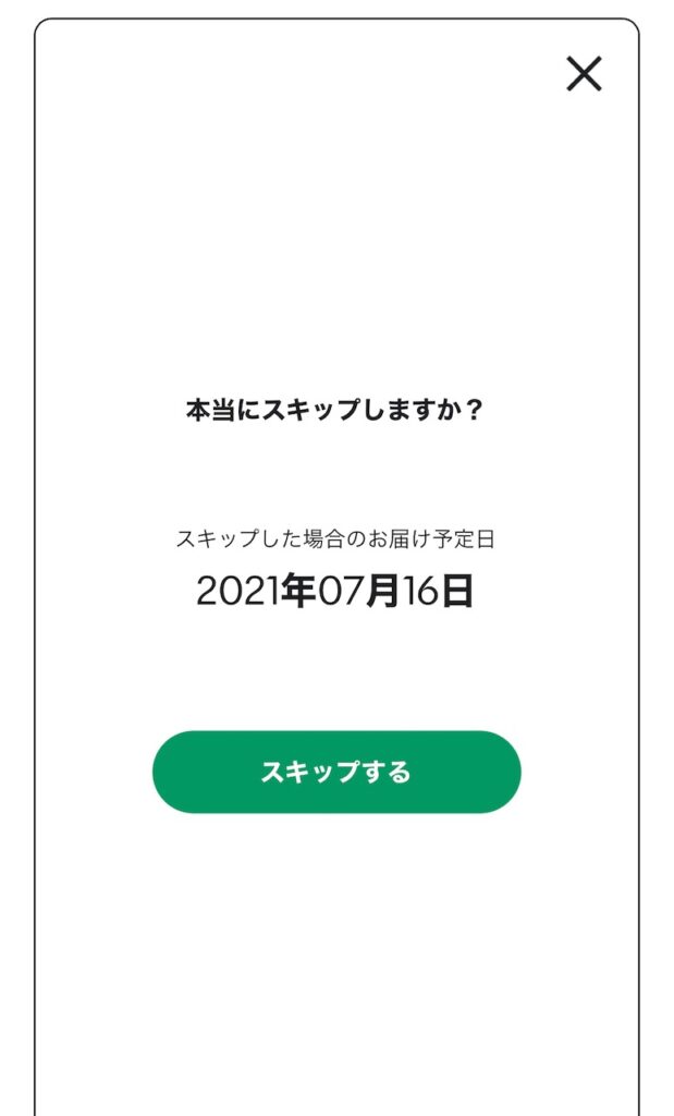 スキップは、予定された配送スケジュールを遅らせる・1回飛ばすことができる制度。