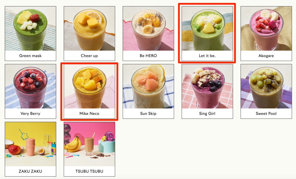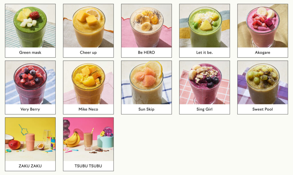 選択するボックスサイズによって1個あたりの金額が異なり、ボックス内でスムージー、スープ、サラダを好きな組み合わせで選ぶことができます。