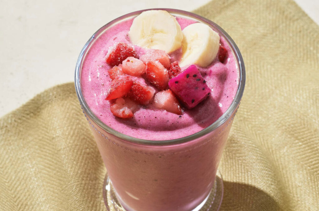 バナナ(エクアドル)、ドラゴンフルーツ、甘酒(米、米こうじ)、いちご、レッドキドニー、ケール、レモン果汁、(一部にバナナを含む)