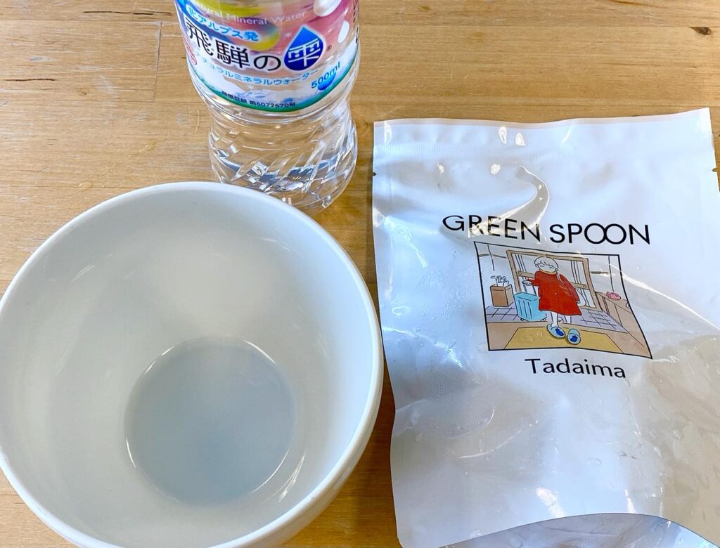 まずはカップ、もしくはパウチの中に、水を100cc入れます。
