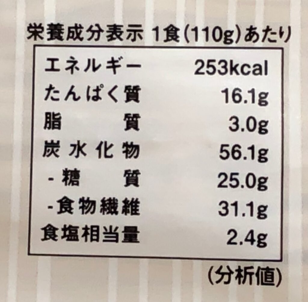 食物繊維量もかなり多くなっています。