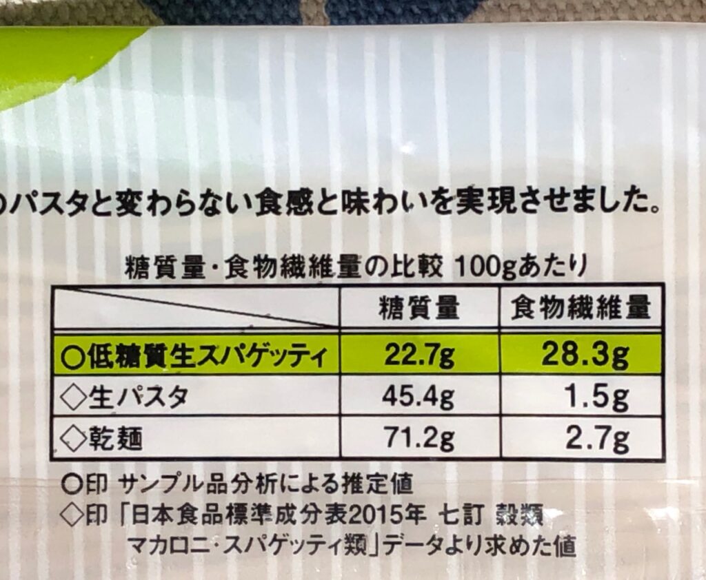 通常の生パスタや乾麺と比べて半分以下の糖質量です!