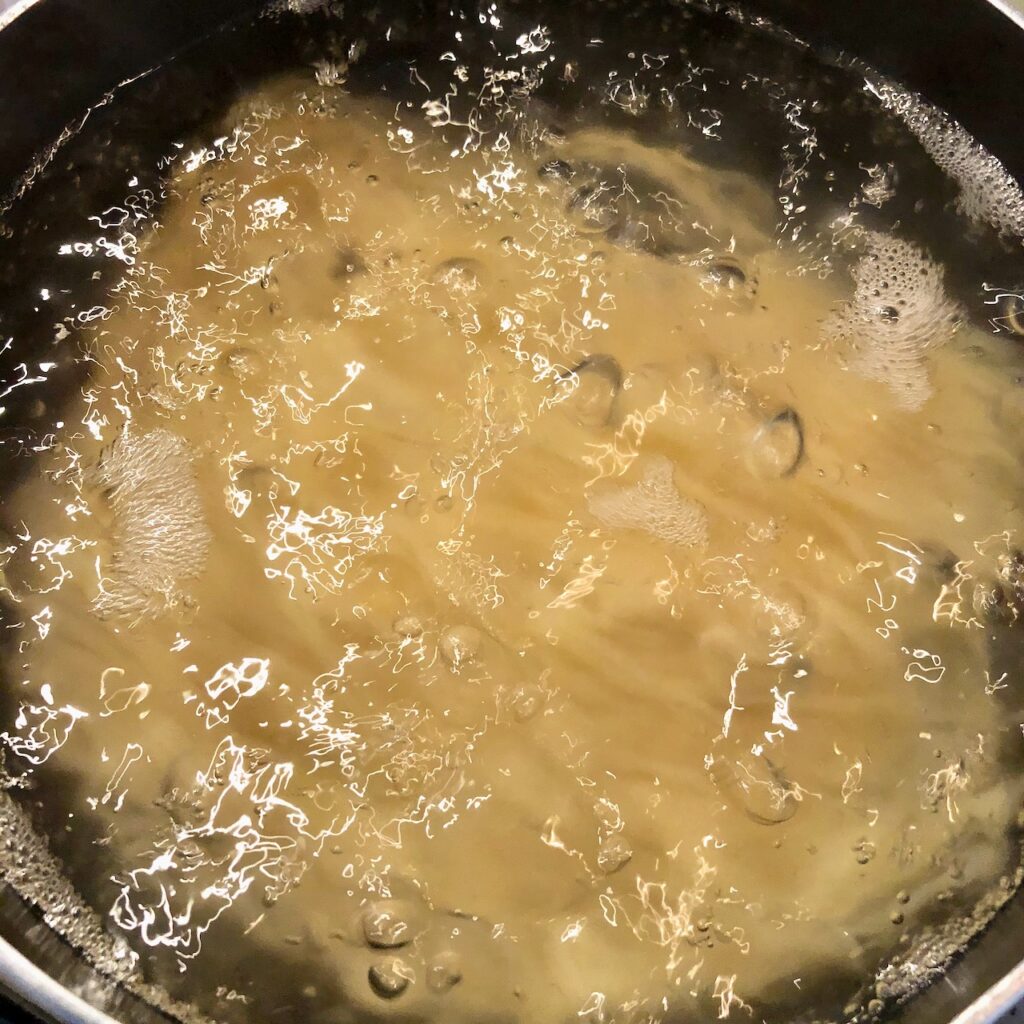 麺を4〜5分(少し長めのほうがいいかも)ゆでて…