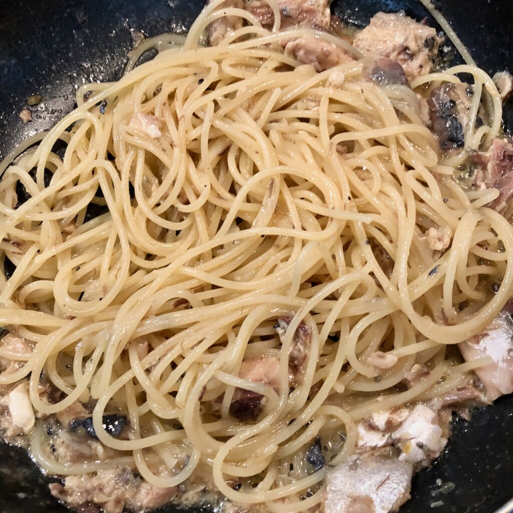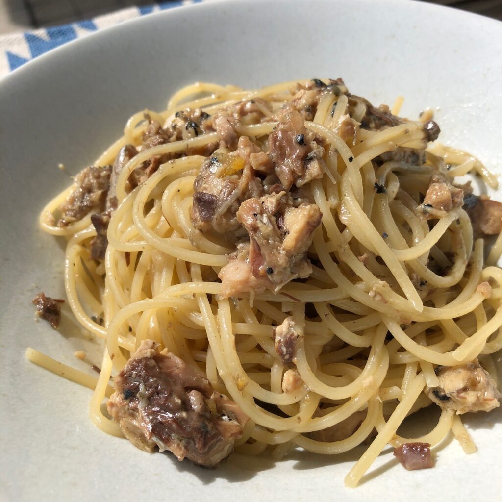 今回はカルディで人気の「塩レモンパスタソース」と家にあったサバ缶を使い、サバ塩レモンパスタを作ってみました!