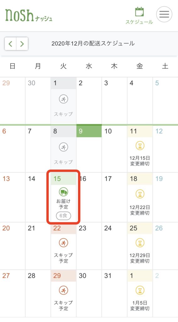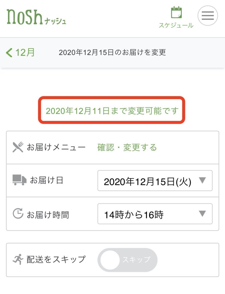 変更可能期限は、スケジュール→お届け予定日のページに表示されています!