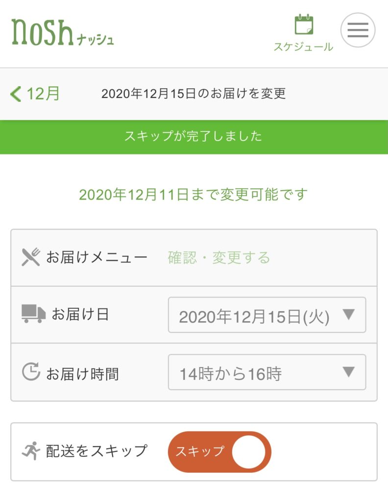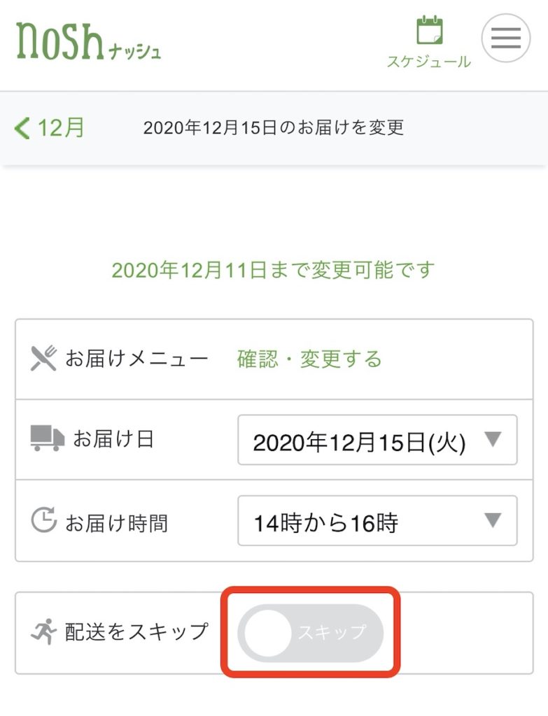 スキップの受付はお届け日の4日前までとなっています。