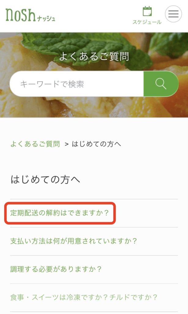 「定期配送の解約はできますか?」を選びます。