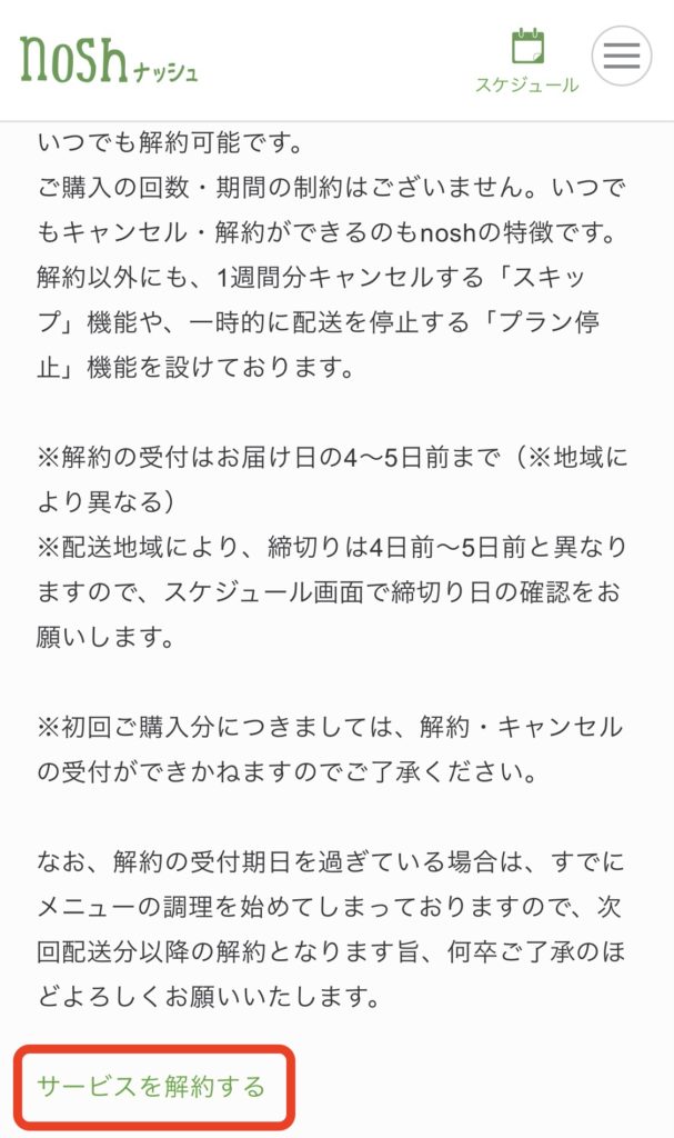 nosh(ナッシュ)の解約のルールと解約方法