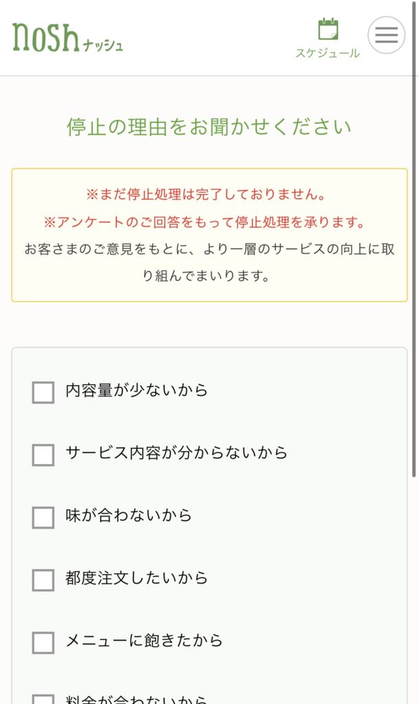nosh(ナッシュ)の解約時の2つの注意点