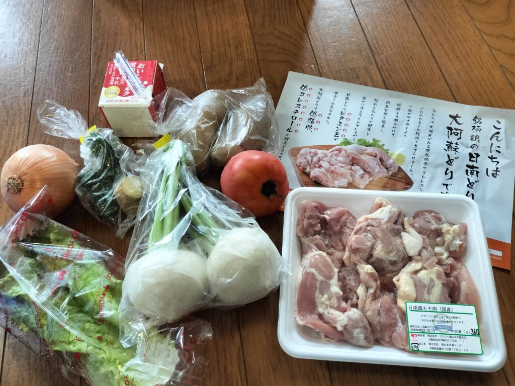 ヨシケイで届いた材料はこんな感じ、思ったよりたくさん届くよ!