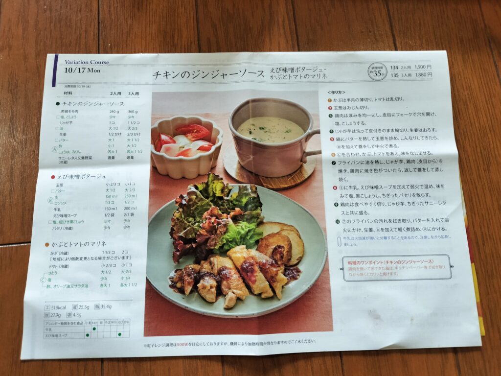 2022年10月17日のメニュー3品、こんな感じでした!