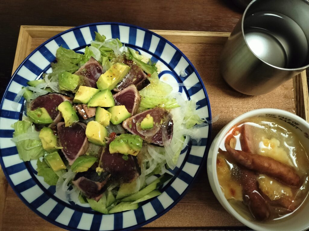 この日はカツオのタタキとスープの日でした。